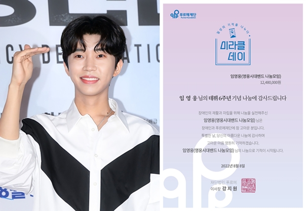 지난 8일, 데뷔 6주년을 맞은 가수 임영웅 씨를 축하하기 위해 ‘영웅시대밴드 나눔모임’의 팬들이 정성을 모았습니다. 푸르메재단 홈페이지에는 7일부터 3일간 축하 배너가 게재됐습니다. 임영웅 씨는 지난 5월 정규음반 1집 발표와 함께 음원, 음반 차트를 휩쓸며 큰 인기를 누리고 있습니다. 유튜브 뮤직 조회수 2위에 오르며 아이유와 방탄소년단을 앞지르는 등 좋은 반응을 얻고 있지요. 임영웅 본인 역시 주변에 어려운 일이 있을 때마다 적극적으로 기부를 해온 것으로 유명합니다. 선한 마음을 가졌다는 점에서 스타와 팬이 꼭 닮았죠? 6년간 변함없는 모습으로 트로트 분야의 정상을 지키고 있는 가수 임영웅의 아름다운 성장을 늘 응원하겠습니다.