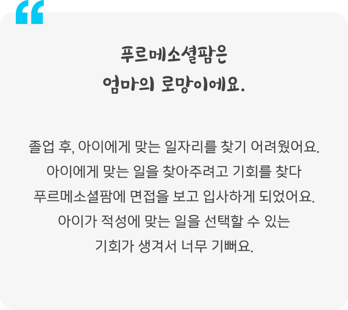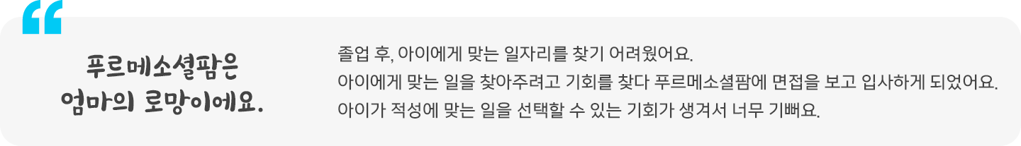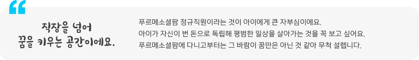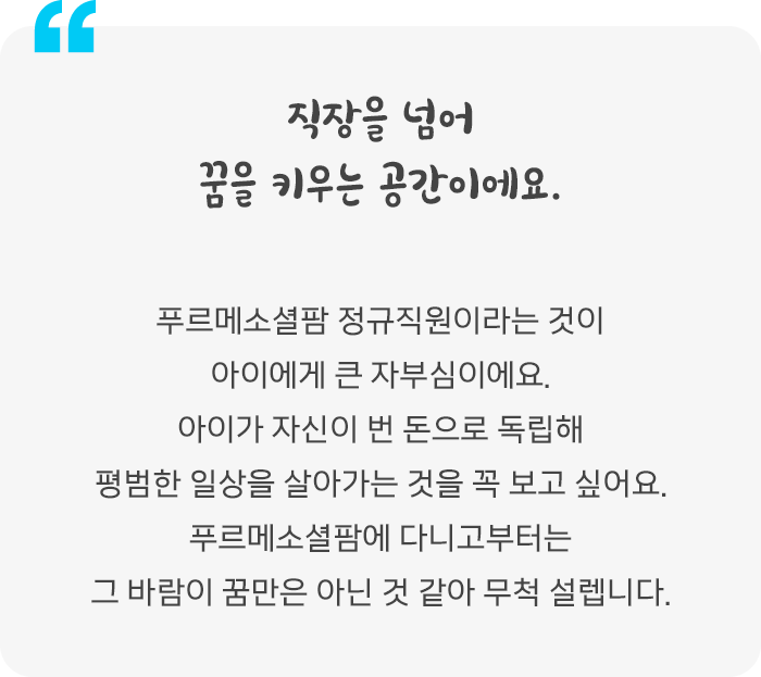 평범한 일상을 꿈꾸는 새로운 일자리입니다.